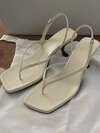 女士方头高跟人字拖,棕色休闲夏季拖鞋
