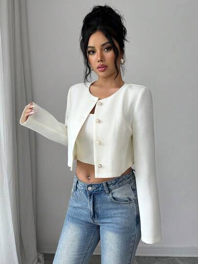 Elenzga 女士优雅休闲杏色度假外套,简约修身款,适合约会、派对、日常出行等各种场合,也是时尚新年穿搭的理想之选。 - 杏色 - 查看 4