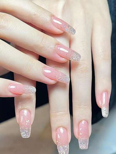 VV MEI JIA ER 使用24入組長形指甲漸層閃爍假指甲、1張膠帶和1個指甲修整文件,打造出更高的時尚品味,假指甲及指甲用品 - 淺粉色 - 查看 1