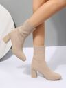 秋冬女式粗跟针织弹力中筒靴,时尚尖头修身袜靴,纯色短靴,可搭配任何服装