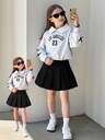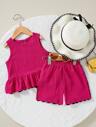 Elladie kids 2件套年轻女孩情人节时尚别致针织荷叶边无袖背心+吊带裙春季套装