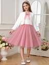 SHEIN Elladie kids 少女花卉貼花蝴蝶結前裝連衣裙