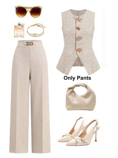 Ellevyn 女士优雅通勤商务阔腿裤,西装裤,百搭优雅经典高腰设计,饰以金色金属装饰,亚麻质感宽松直筒裤现已上市。它们用途广泛,适合通勤,也适合办公室穿着。