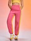 女士户外休闲抽绳裤,纯色简约设计,带大口袋,粉色宽松版型长裤