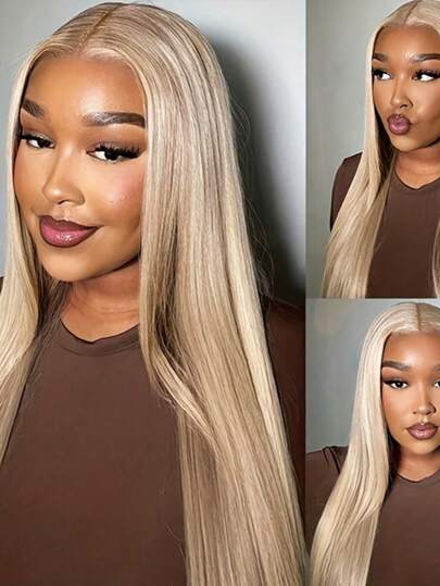 Eulisi P10/613 直发蕾丝前假发真人发 13x4 可戴无胶假发真人发 150 密度金色挑染蕾丝前假发真人发浅棕色预拔婴儿发万圣节服装 - S10/613 - 查看 15