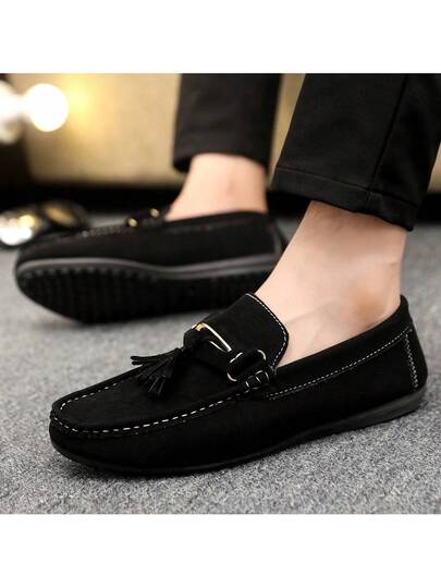 欧美时尚休闲男士一脚蹬乐福鞋,软底宽松驾驶鞋,新款莫卡辛鞋 - 黑色 - 查看 1