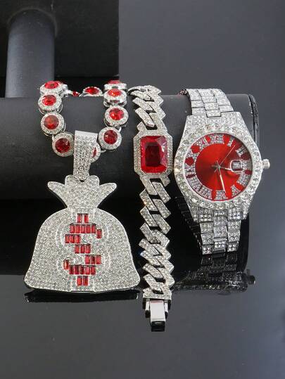 4-piece Set: Pendant + 20-inch Necklace + 8-inch Bracelet + Red Watch