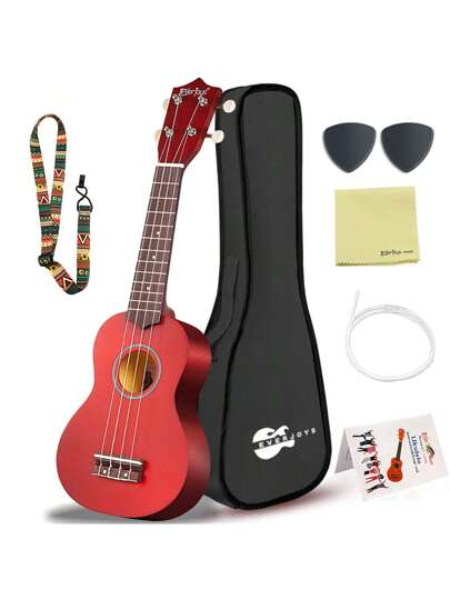 Everjoys Soprano 尤克里里初学者套装 - 21 英寸演出包速学歌本拨片背带布一体式套装 - 鏽棕色 - 查看 1