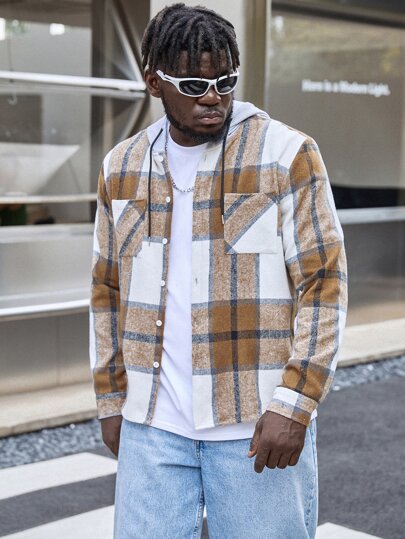 Manfinity 男士格紋印花抽繩連帽襯衫 - 彩色 - 查看 1