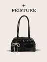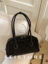 1个FEISTURE女士纯色PU保龄球包,时尚单肩包,附赠店铺关注链接及配件挂件,拉链封口,适合女孩、女士、大学生、年轻职业人士,非常适合工作、商务、通勤、上学等场合。