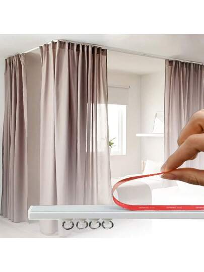 FEPK 二合一多功能窗帘轨道,纳米静音滑轮轨道,可拼接修剪,支持侧面安装和顶部安装,粘贴安装和钻孔安装,广泛适用于窗帘、薄纱窗帘、浴帘、隔断、橱柜、衣柜、浴室配件 - 彩色 - 查看 1