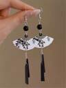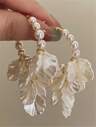 1 对复古几何圆形串珠白色花瓣流苏耳环,适合女士派对婚礼旅行珠宝