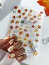 2张卡通恐龙涂鸦风格指甲贴纸可爱太阳脸贴花枫叶美甲设计装饰DIY