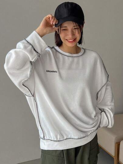 FRIFUL 字母圖案頂針落肩袖運動衫 - 白色 - 查看 2