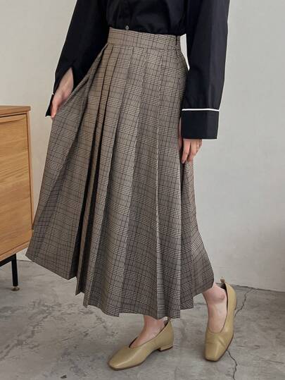 FRIFUL 女式高腰格子裙 - 灰色 - 查看 8
