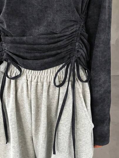 FRIFUL 女士休闲扎染抽绳长袖 T 恤,春秋季 - 黑色 - 查看 5