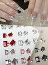 100颗闪亮迷你透明白色平底菱形水滴形和心形美甲水钻装饰