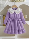 女童甜美蝴蝶结刺绣装饰长袖连衣裙,适合春秋季圣诞派对、家庭聚会、户外玩耍和日常穿着