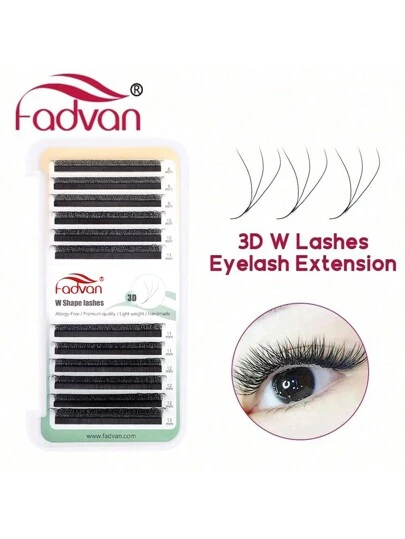Fadvan 3D W 型假睫毛 0.07 C/D/LU(M) 8-15mm 预制 W 型扇形假睫毛,自然柔软黑/棕色 W 型假睫毛,仿貂毛单根假睫毛,专业睫毛嫁接,美睫师用品 - 黑色 - 查看 2