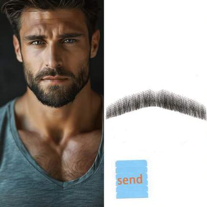 逼真全手工绑扎山羊胡假胡,蕾丝隐形假胡子,适用于万圣节装扮、男士化妆、娱乐/戏剧/派对/电影道具(黑色) - 彩色 - 查看 1