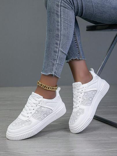 秋冬女士休闲鞋、时尚运动鞋、街头风格小白鞋、轻便滑板鞋 - 白色 - 查看 1