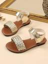 1 双时尚百搭粉色女孩珍珠和水钻蝴蝶结装饰可爱平底凉鞋,圆头,适合日常穿着、跳舞、春秋季户外穿着,闪光装饰包头公主鞋,尺码偏小半码