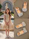 1 双新款时尚可爱蝴蝶结珍珠女童防滑耐用舒适百搭鞋,心形设计,适合春秋户外、日常、派对和学校穿着玛丽珍乐福鞋