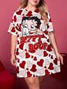 Betty Boop x SHEIN 大码夏季休闲心形图案圆领短袖睡裙
