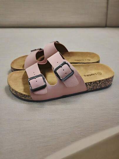时尚假日风格双带双扣休闲防滑拖鞋,软底舒适一脚蹬女士凉鞋,适合圣诞节、万圣节、居家、约会、购物、通勤、派对、海滩度假