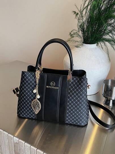 时尚印花大容量通勤包,新款经典百搭女士单肩手提斜挎包 - 彩色 - 查看 1