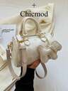 2024新款时尚经典小丑纯色PU防水材质字母印花装饰双提手枕形包,配动物吊坠,适合购物,可斜挎。适合购物、钱包、年轻女性、大学生、新婚夫妇、白领人士。非常适合办公室、学校、工作、商务、通勤、户外活动、旅行和郊游。
