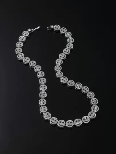時尚流行男士水鑽錶情裝飾項鍊合金適合珠寶禮物和時尚外觀 - 銀色 - 查看 1