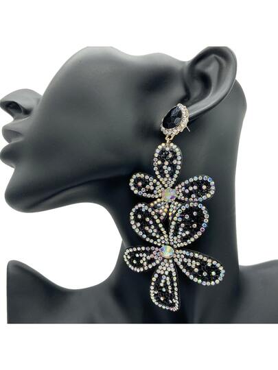 時尚波西米亞風格鑲有鑽石的耳環,女性的復古掛墜耳環,時尚珠寶禮品批發 - 黑色 - 查看 2