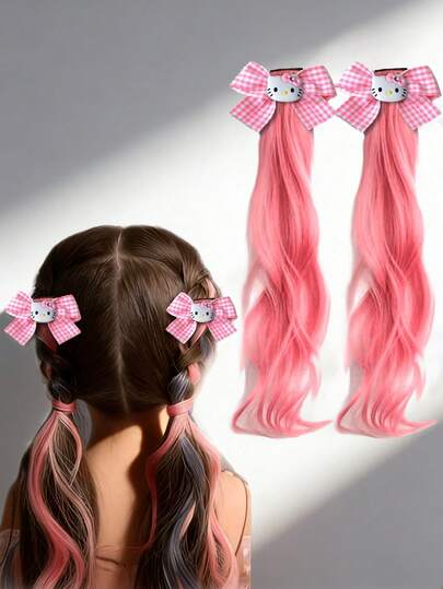 时尚儿童发饰 - 可爱卡通格子蝴蝶结树脂发夹 - 粉色 - 查看 1