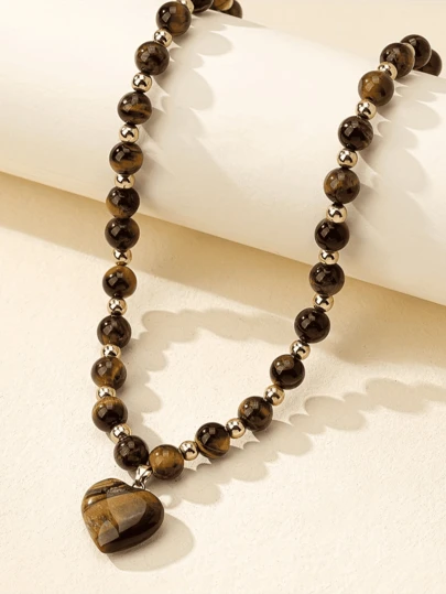 时尚奢华优雅虎眼石项链,搭配心形吊坠,适合日常佩戴、通勤、度假、街头摄影,亦可作为礼物馈赠。 - 棕色 - 查看 1