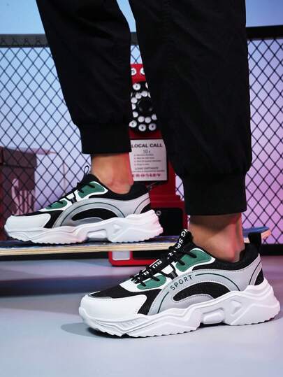 時尚男士皮革厚底鞋,透氣,防滑,低頂綁帶設計,適用於休閒和運動 - 彩色 - 查看 1