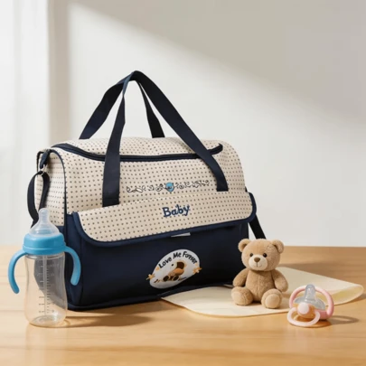 时尚多功能单肩妈妈包;轻便便携妈妈包;可爱小熊多隔层斜挎尿布包 - 藏蓝色 - 查看 13