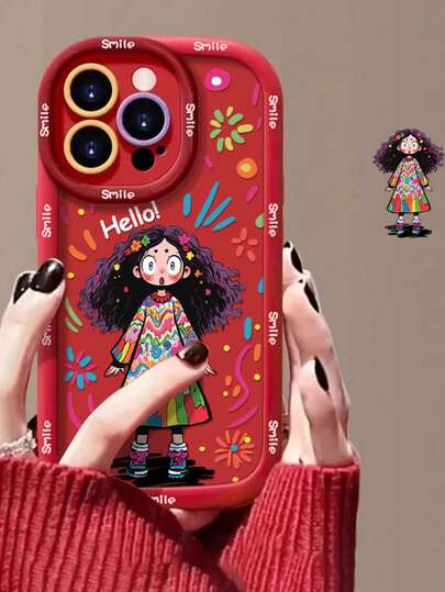 时尚手机壳,兼容 16、17、14 Pro Max、13、12、11、15 - 卷发女孩涂鸦设计,高品质TPU保护套,防摔 - 泡芙殼-紅塗鴉女孩 - 查看 2