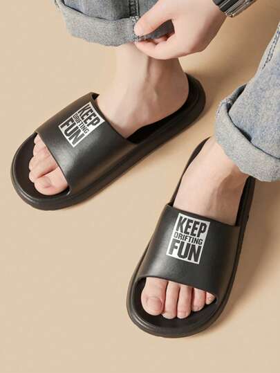 時尚拖鞋適用於男士字母圖案單帶拖鞋 - 黑色 - 查看 1