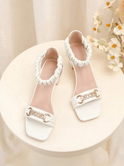 青少年时尚百搭舞会高跟凉鞋 - 白色 - 查看 1