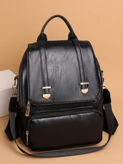時尚女款大容量旅行背包書包街頭風格 - 黑色 - 查看 3
