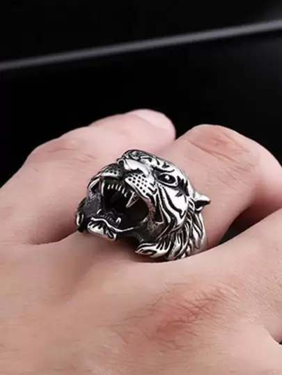 時尚流行男士老虎裝飾戒指合金,適合珠寶禮物和時尚外觀 - 復古銀色 - 查看 1