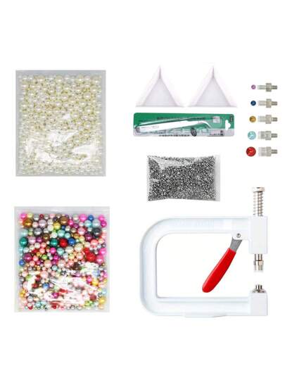 人造珍珠手工裝置機,帶有1000個5種尺寸的圓形人造珍珠鉚釘,適用於帽子/鞋子/衣服/袋子等 - 米色 - 查看 1