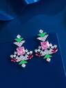 一套女士优雅镀银立方氧化锆珐琅花朵流苏项链和垂坠耳环,CZ婚礼首饰套装,适合新娘订婚、宴会、派对、舞会等场合,可作为新娘、伴娘、女士、女友、妻子礼物。