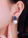 一对女士波西米亚风大蓝绿色花朵耳钉,镶嵌立方氧化锆,适合婚礼、订婚、宴会、选美、派对、舞会等场合佩戴,也可作为女性配饰,送给女友、新娘、伴娘或作为圣诞礼物。