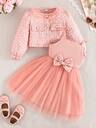 2 件女婴可爱蝴蝶结印花雪纺长袖上衣和休闲裤套装,时尚甜美