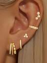 4件套女士金耳环套装,包括链条流苏吊坠耳环、圈形耳环、锆石耳钉、时尚首饰配饰、耳夹耳环和18K镀金立方氧化锆花朵耳环套装