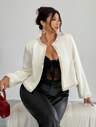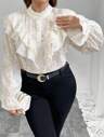 Firerie 大码优雅通勤新款中式立领无袖落肩迷你荷叶袖修身白色衬衫