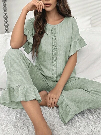 喇叭袖荷葉邊睡衣套裝 - 薄荷綠 - 查看 1