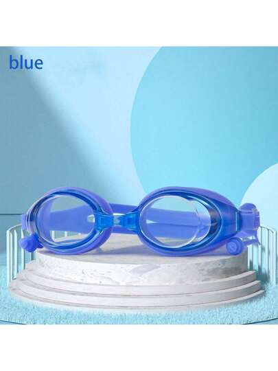 平面多色泳镜,大镜框,防水泳镜,硅胶镜框,防雾,高清男女通用泳镜 - 藍色 - 查看 1